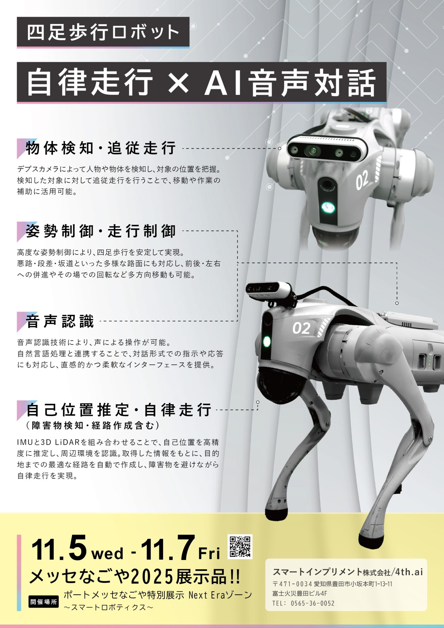 既存の四足歩行ロボットに、自律走行とAI音声対話の技術を組み合わせることで