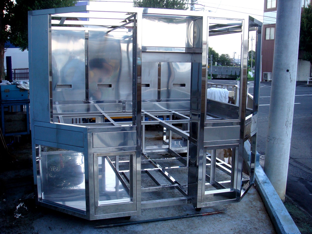 弊社は主に産業用設備機器に携わっており、手のひらサイズの小さな部品から複雑な曲げを含む精密板金加工だけでなく、重量が1.5t程度までの架台、フレーム等の大型筐体溶接加工も行っております。