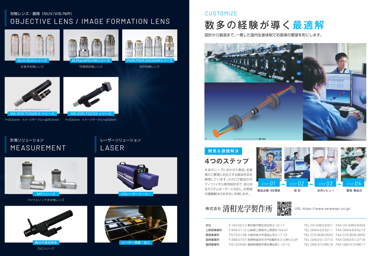 特に半導体、精密電子部品製造用のカスタム光学部品の設計開発と製造広範囲で実績があります。