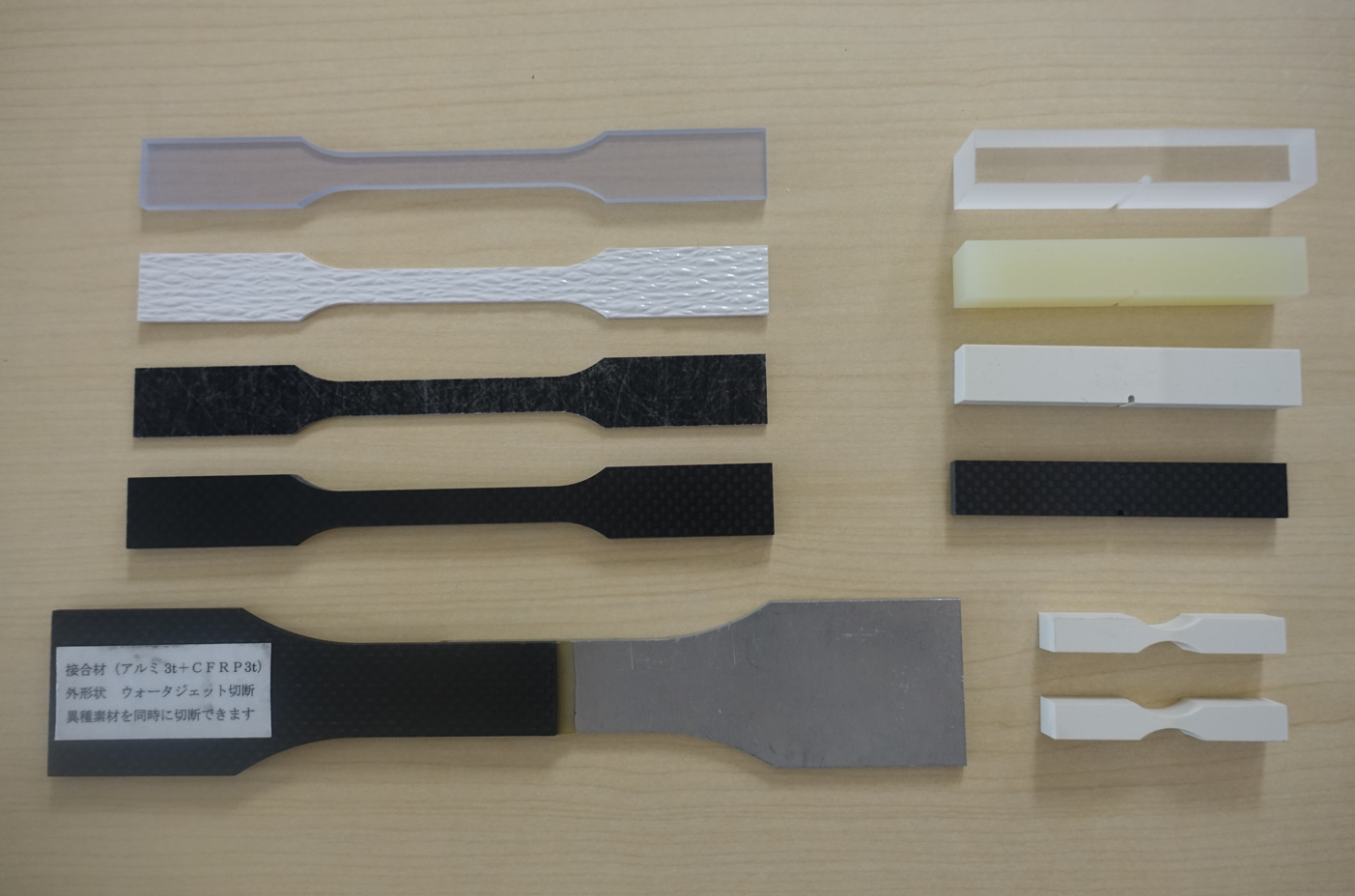 • JIS規格・JIS準拠試験片の製作:CFRPなどの特殊樹脂や複合材の性能評価に必要な試験片を、素材特性を損なうことなく高精度に切り出すことができます。